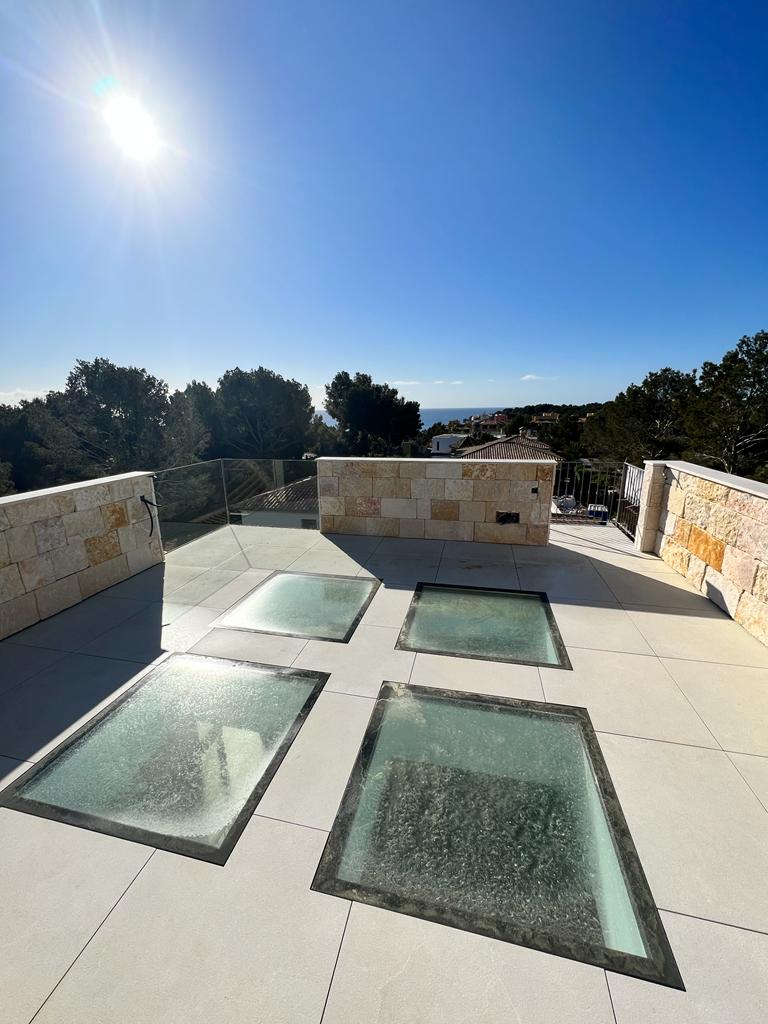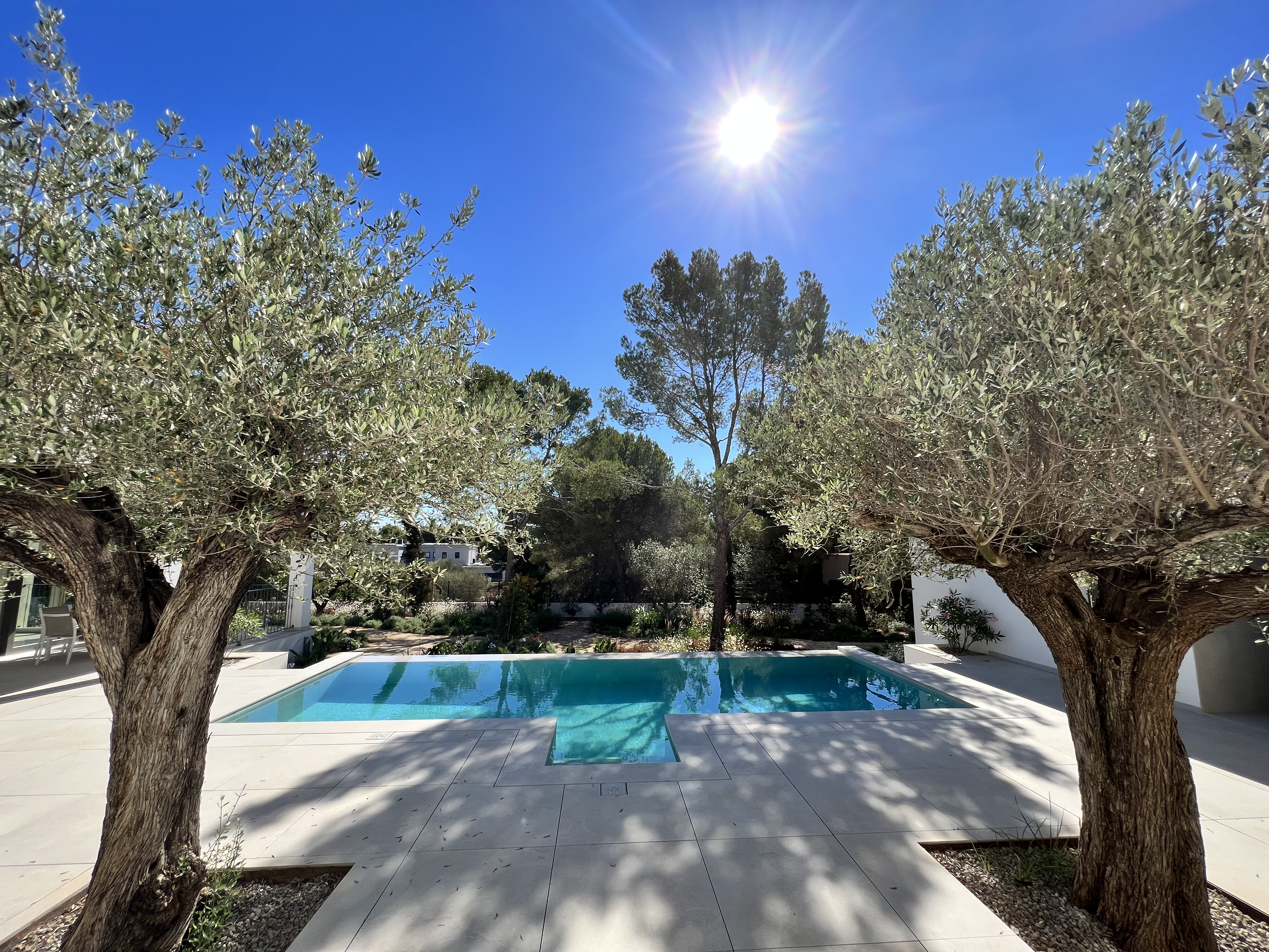 Die Sonne wärmt und das Wasser plätschert über den uneinsehbaren Infinity-Pool.